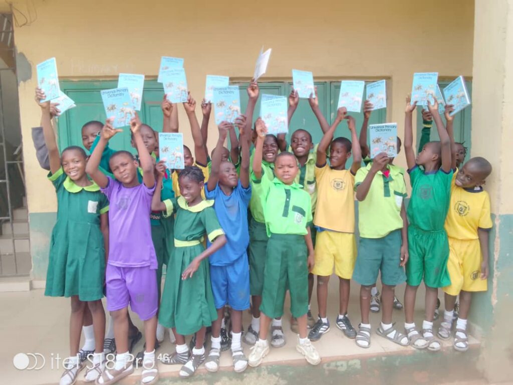March 2023; 19 pupils from the Aiyetoro Primary School book reading event, got free English Dictionaries from Power of a Thousand Foundation